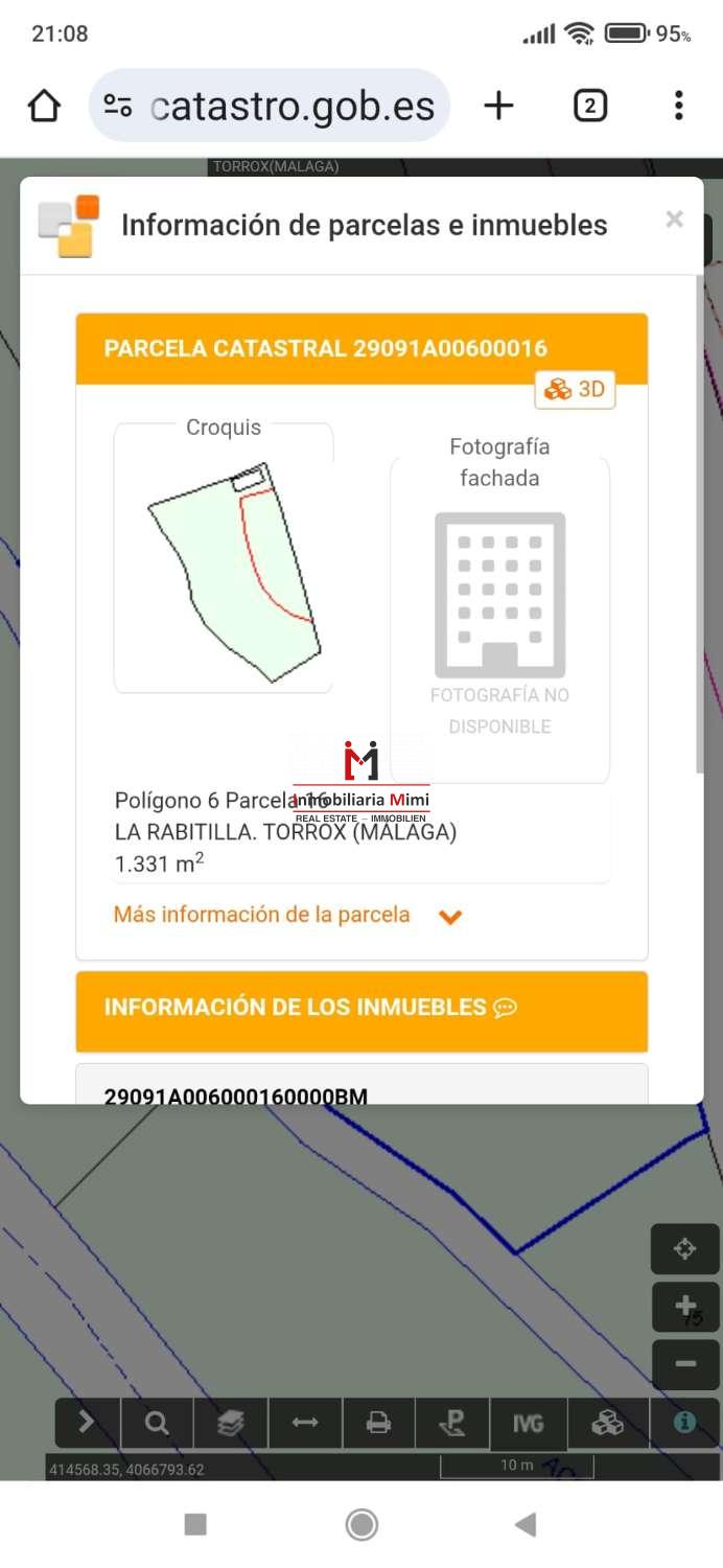 Apero i ruiner på ett land med en yta på 1650.00 m2, platsen är dess dygd vid foten av vägen för klättringen till staden Torrox och 400 meter från rondellen tillgång till Torrox Park och staden Torrox, området La Rabitilla. .